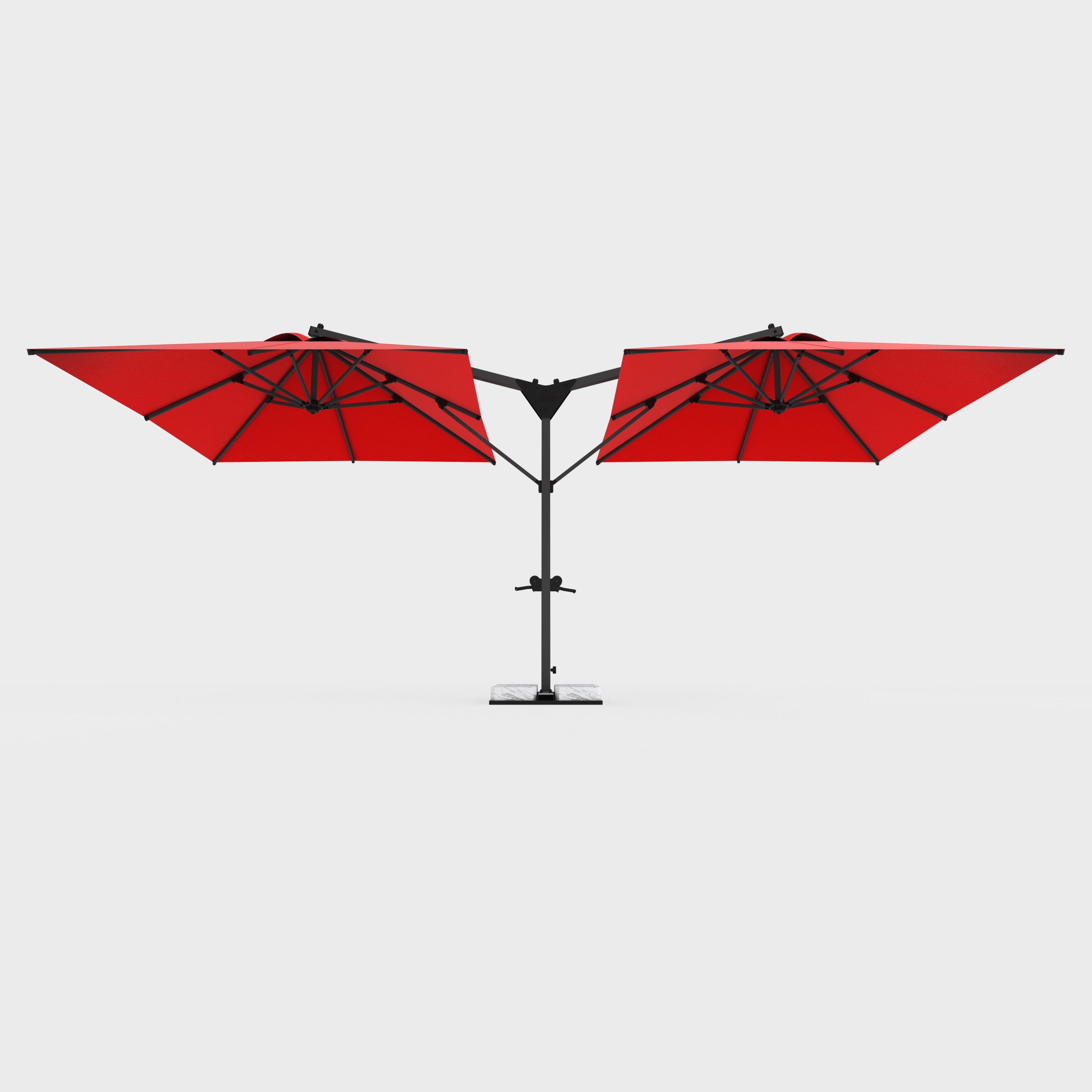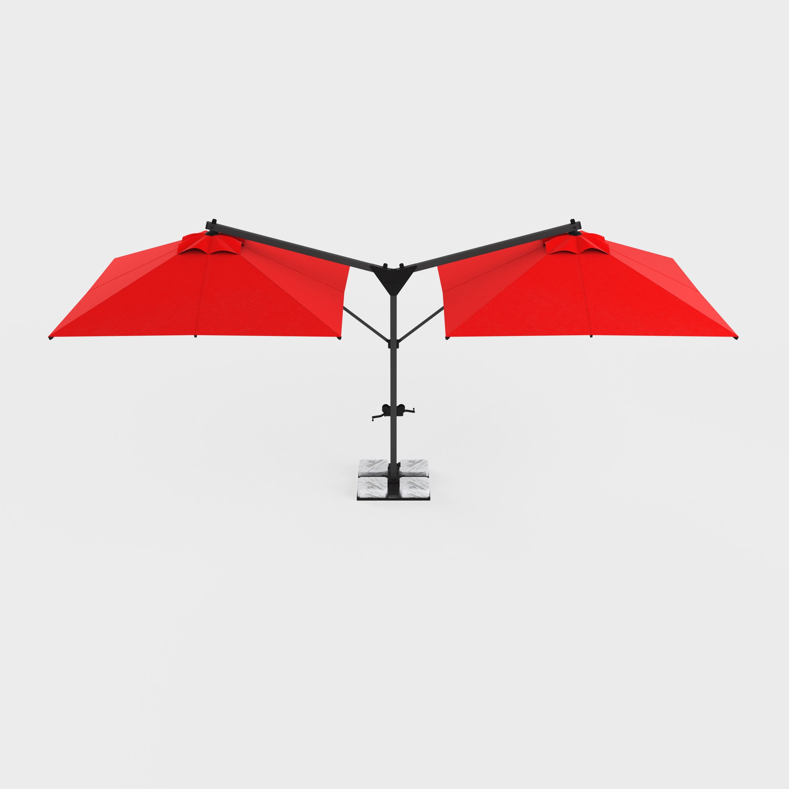 single central leg and dual side-pole umbrella openings, this design