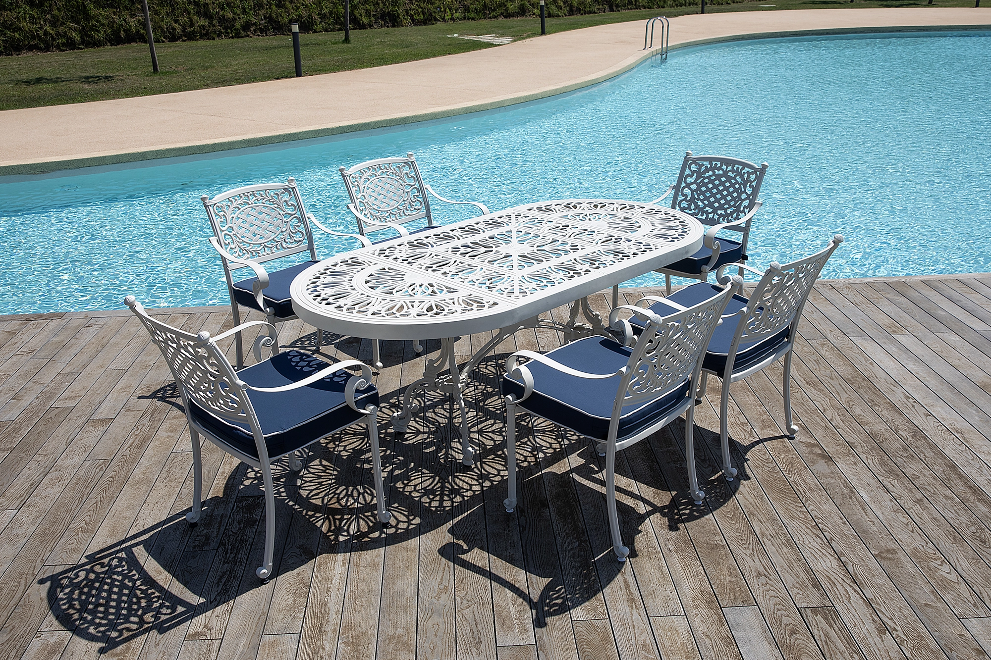 The table and chair set are produced as aluminum injection molding.